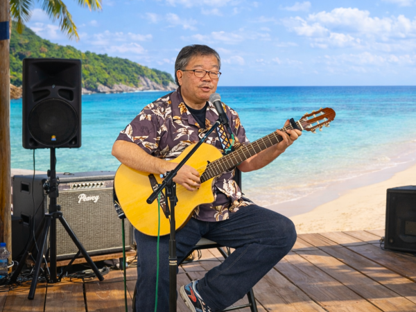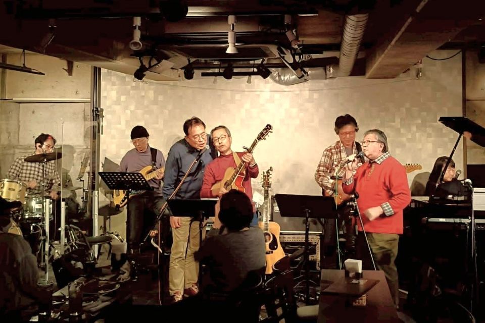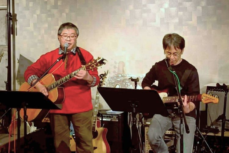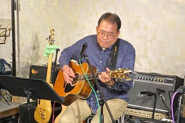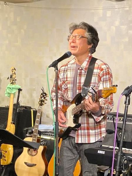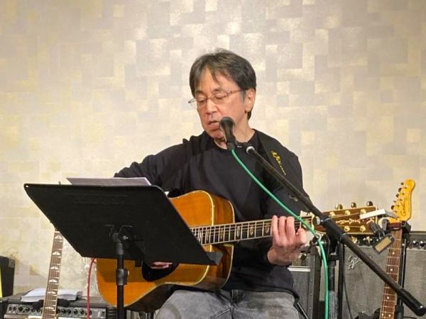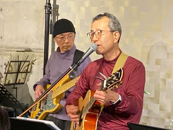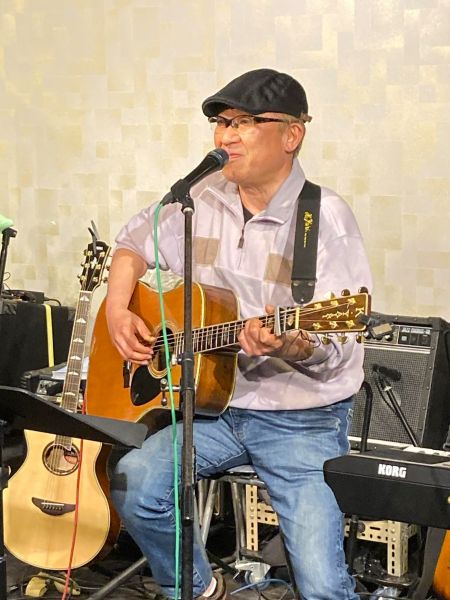 和洋とりそろえトラベルギターでハープも入れながらのステージ