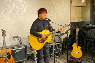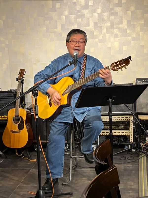 和洋とりそろえトラベルギターでハープも入れながらのステージ