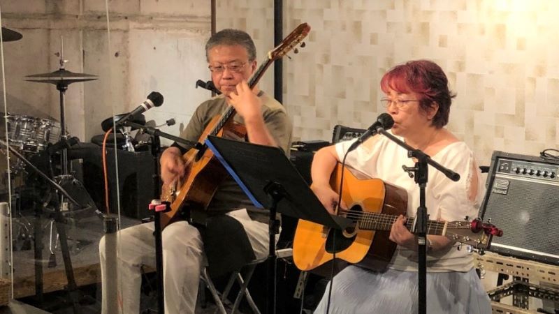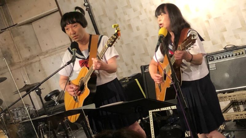 ウクレレに持ち替えて4人組のユニットも組んでいる二人