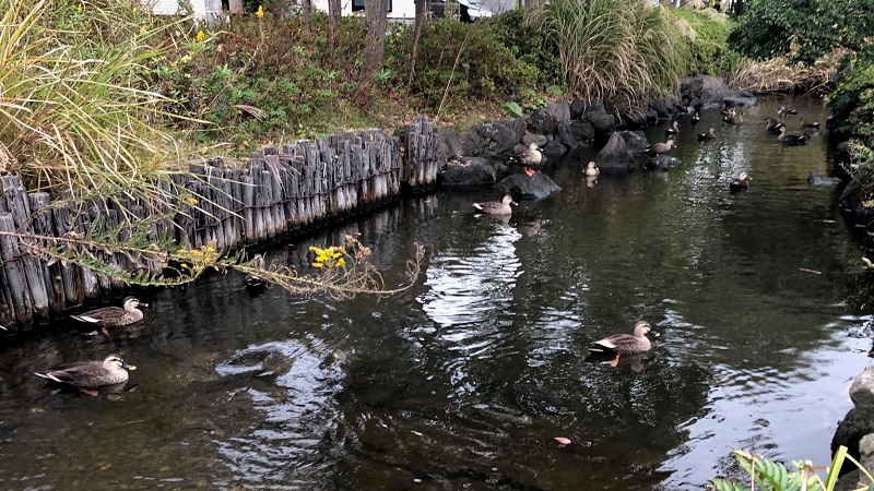 親鳥と一緒の愛らしい子ガモたちが見られるかな![]()