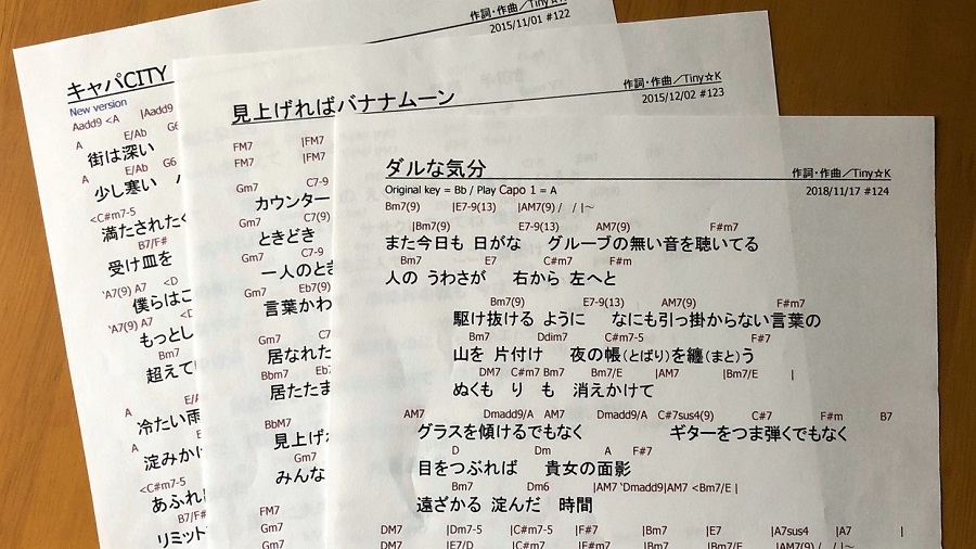 頭の中で今も鳴り続ける曲があったので コード譜などを探してみると