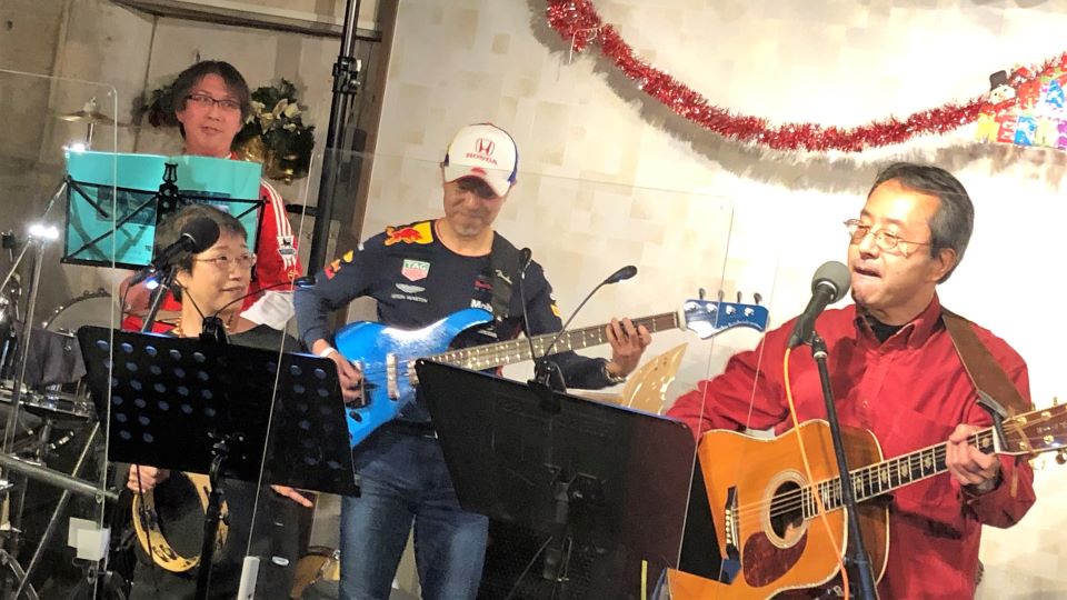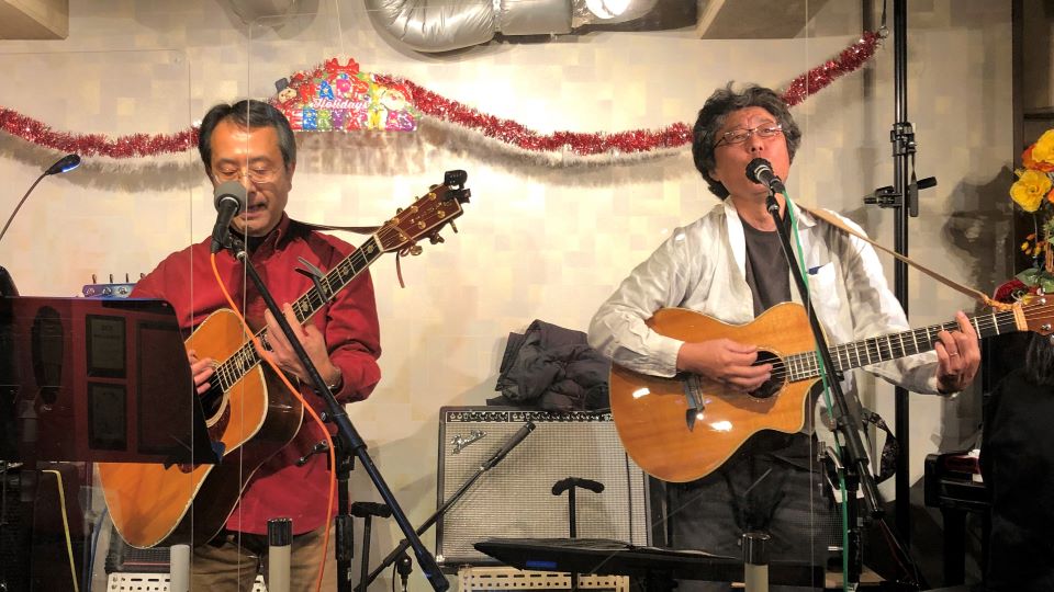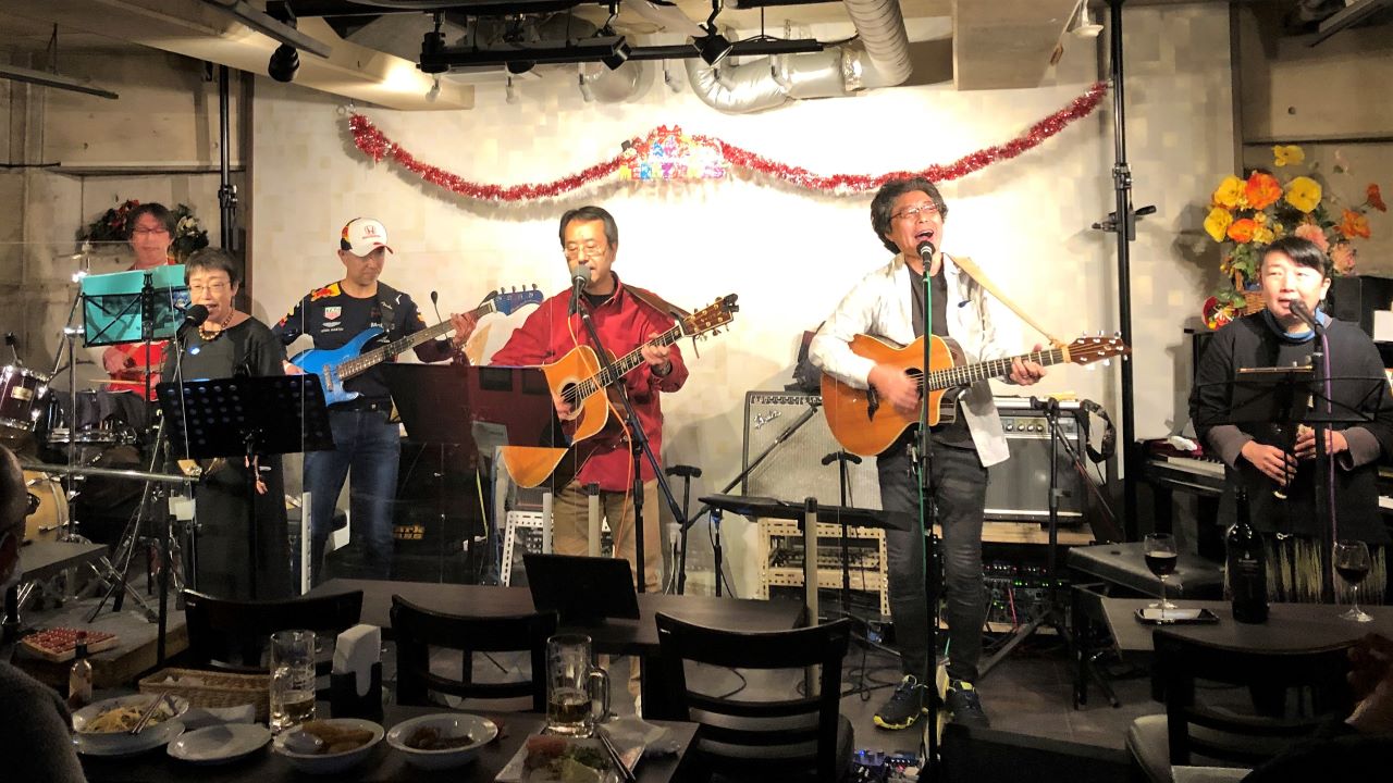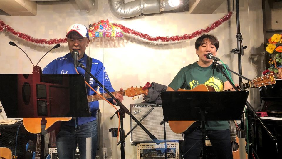 職場同僚のコンちゃんがアコギで弾きまくり歌いまくり。