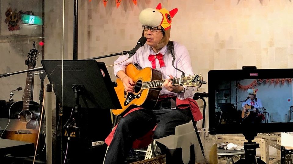 仮装はお店常連のあの方の出で立ちに競走馬のかぶり物