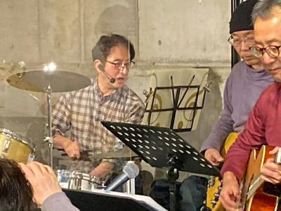 ドラマーの彼はおっぴんと越後屋のサポートで