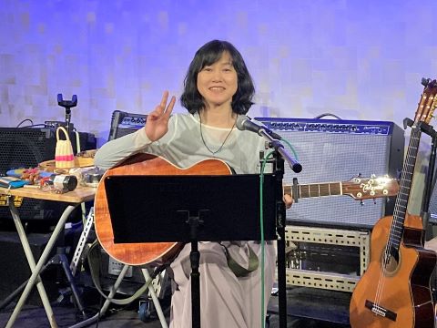 彼女もガンザ(ブラジル音楽でのシェイカー)で参加します。