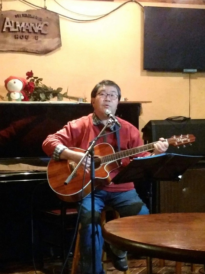 弾き語りをはじめて まだ日が浅いというベーシスト。