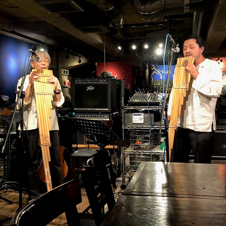 フォルクローレを奏でる本場ペルーのイケメンとお弟子さんのコンビ。