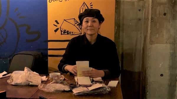 まなみマン店長もテーブルの片隅で伝票の整理など