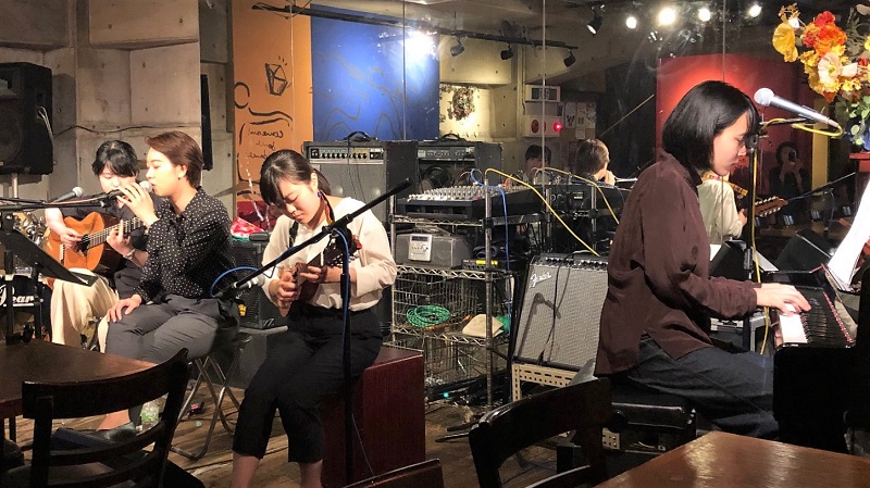 アコースティックなポップスを軽やかに演奏する若き女性グループでした。