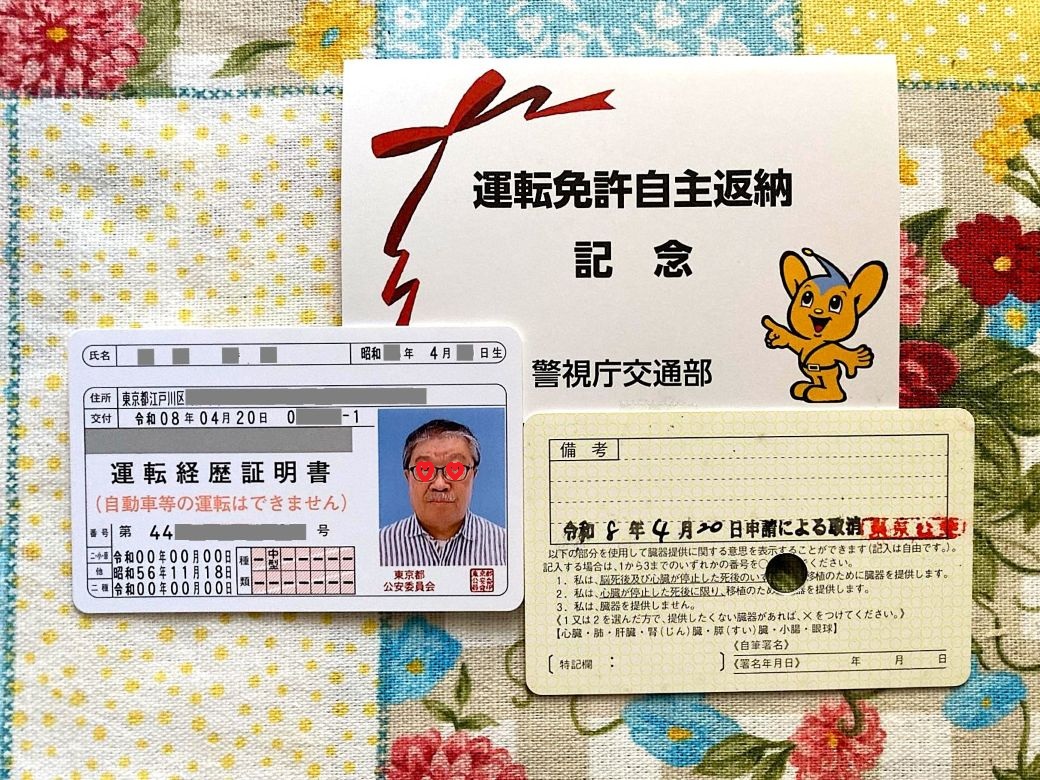 運転免許証の自主返納とともに運転経歴証明書の交付を受けた