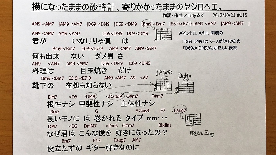 カバー曲でもオリジナルでも コード譜を作るとき、