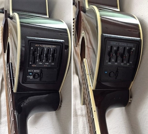 違いは何でしょうね。ともに合板だし。ネックもヘッドも同じ材。