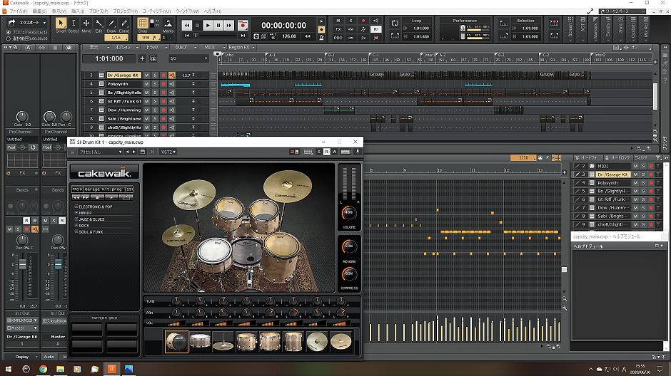 今ドラム音源を表示しているのでこんな感じ・・・