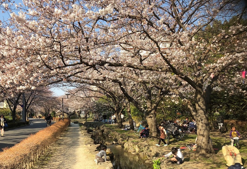 親水緑道のほうも自転車がダメなところもありますが、通れる道が多いです。