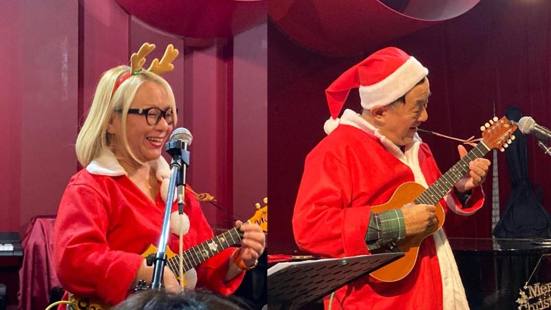 最後はとっき~&越後屋の歌の掛け合いで「ウクレレクリスマス」