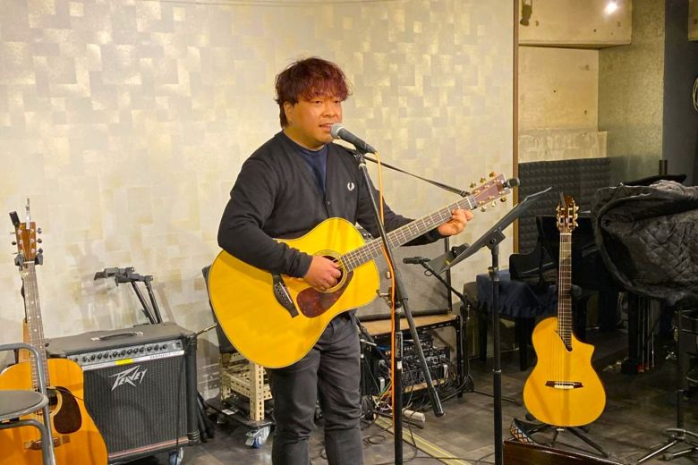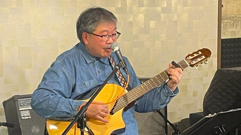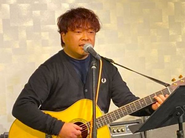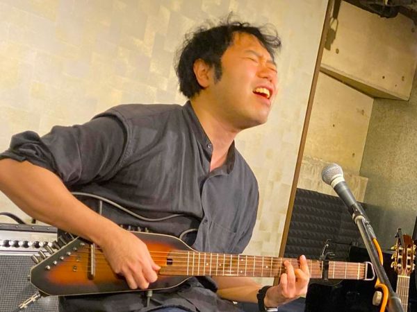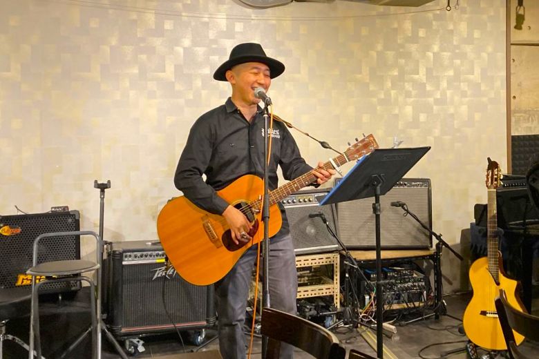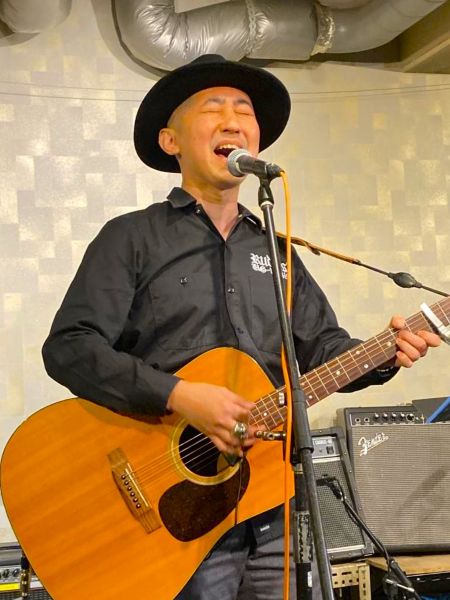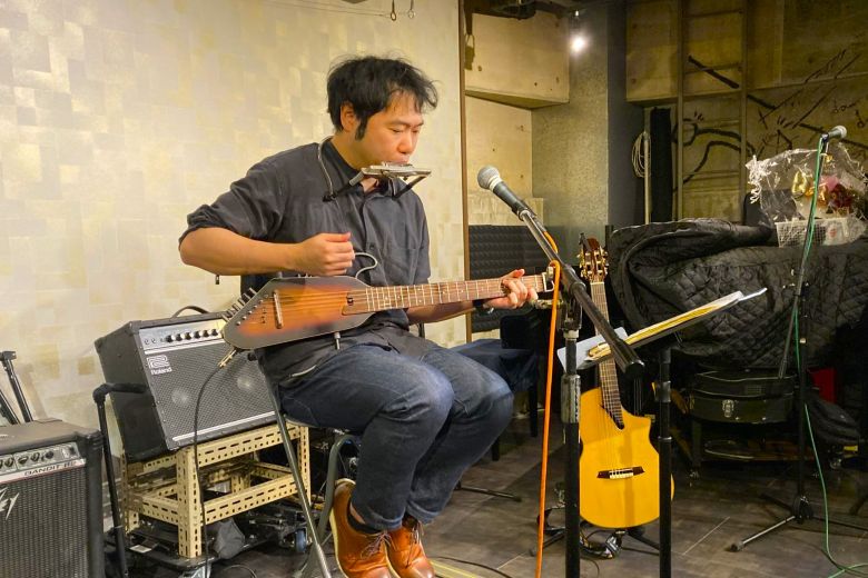 和洋とりそろえトラベルギターでハープも入れながらのステージ