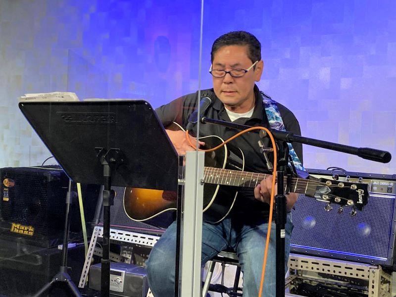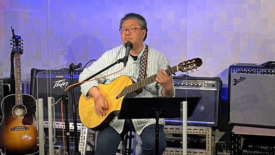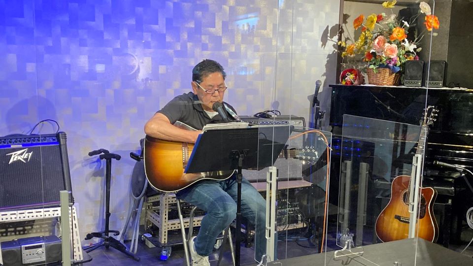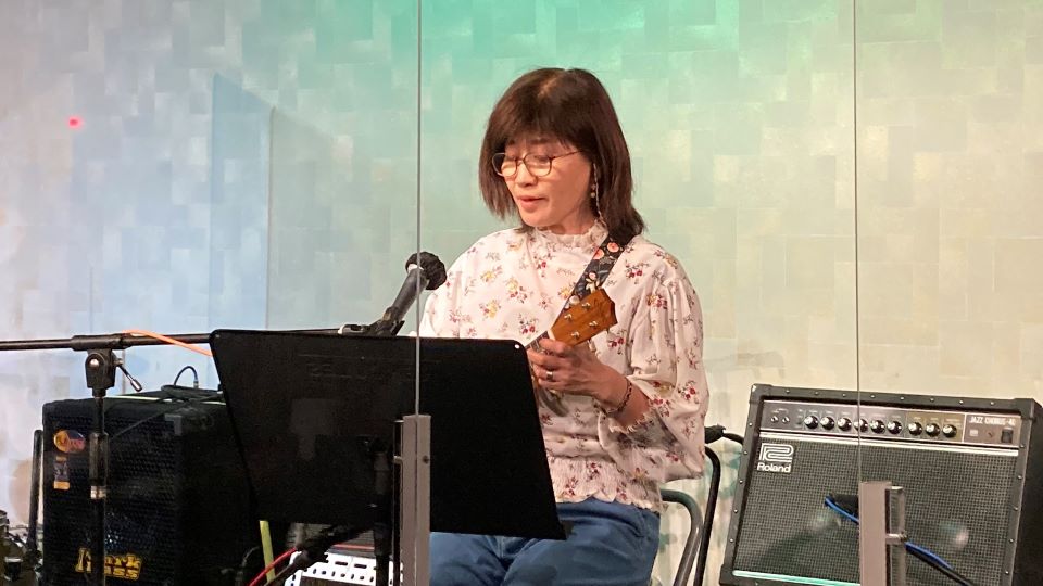 「ルージュの伝言」「ハナミズキ」をしっとりと歌います